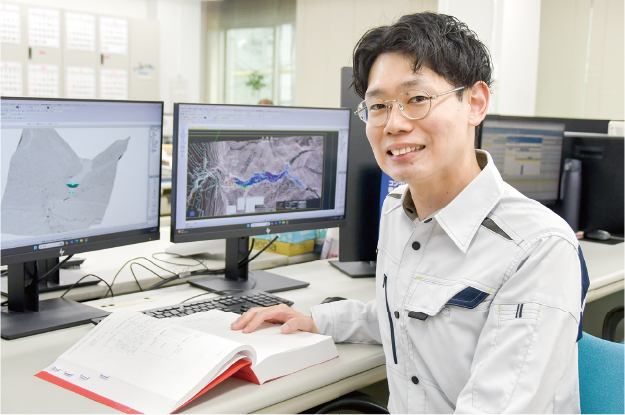 もともとは住宅関係の営業職でしたが、より大きなスケールのものづくりに挑戦したいと考え、「地域インフラを支える」という社会的意義のある当センターへ転職しました。公共事業に携わることで、⾧野県全体の暮らしを支えられる点に大きな魅力を感じています。面接では、役員の方の穏やかな人柄や、丁寧な姿勢に「ここなら安心して働ける」と感じました。入社後もその印象は変わらず、風通しの良さや、OJTによるきめ細かなサポートを実感しています。安心して挑戦でき、自分の可能性を広げられる職場です。