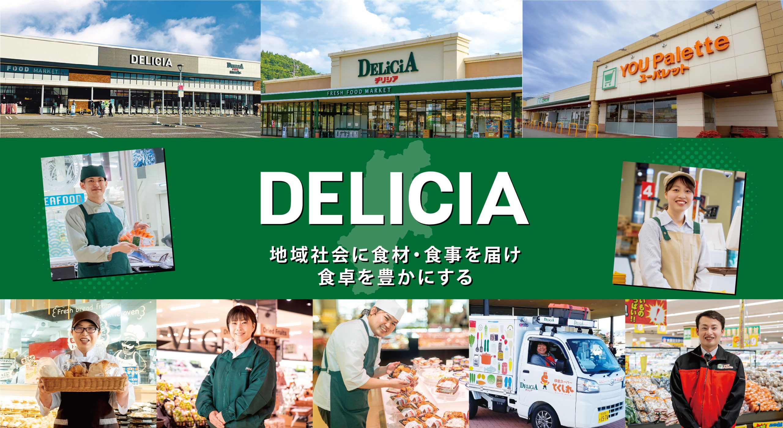 食品スーパー「デリシア」を52店舗、生鮮業務スーパー「ユーパレット」を9店舗、長野県内で展開しています。