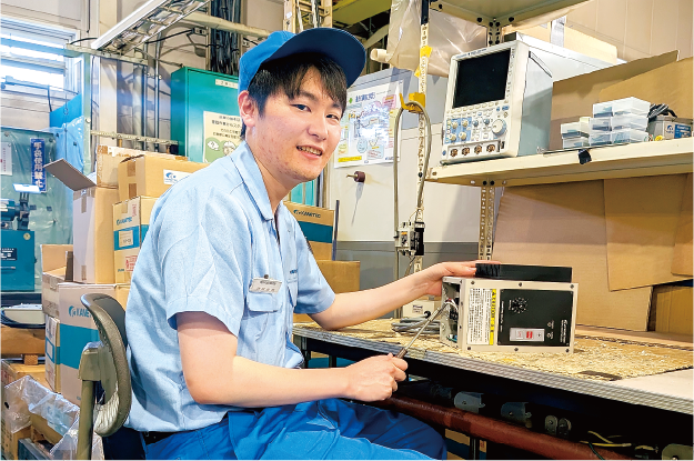 ハードとソフトの両面に関わり、さまざまな機器との連携など仕事の領域が幅広いことが魅力です。若手も挑戦できる風土で、入社2年目で展示会用のプログラム制作や改良品につながる試作などに関わりました。考えすぎると手が止まるので、あまりミスを気にせず思いついたらまずトライするようにしています。それができるのも、分からないことも優しく教えてくれる上司や先輩のおかげです。日々の業務や取り組みの中で力をつけ、まずは改良品の開発や設計をしてみたいです。