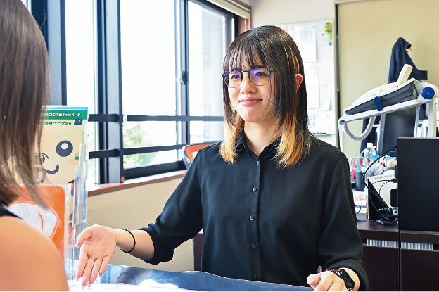 大学で学んだ化学の知識を生かして地元で働きたいと思い、県内の企業説明会や工場見学に参加して興味を引かれたのが当社でした。設計から製造まで一貫生産していることから多様な業務に携われ、その過程で扱う薬品で化学の知識も生かせると感じました。また、説明会での先輩社員との座談会が質問しやすい雰囲気で、気兼ねなく話せる環境で働けると感じて入社を決めました。現在は新たな化学液を使う際に学生時代の学びを生かすほか、今後は機械で使用する化学物質でも役立てたいです。