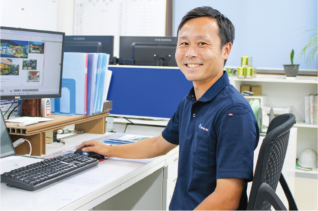 人の役に立つ仕事がしたいと思い、建設業を選びました。子どもの頃からトラックなど働く車が大好きで、重機を扱う建築土木の仕事に興味があったことも大きな理由です。この業種は個人経営の職人さんが多い中、当社は会社として社員それぞれが個性を発揮できるチームを組み、お互いに力を合わせて仕事をしていることに魅力を感じました。また資格取得支援制度や、社宅制度、現場で使う物資の支給など福利厚生がしっかりしていることにも安心感がありました。