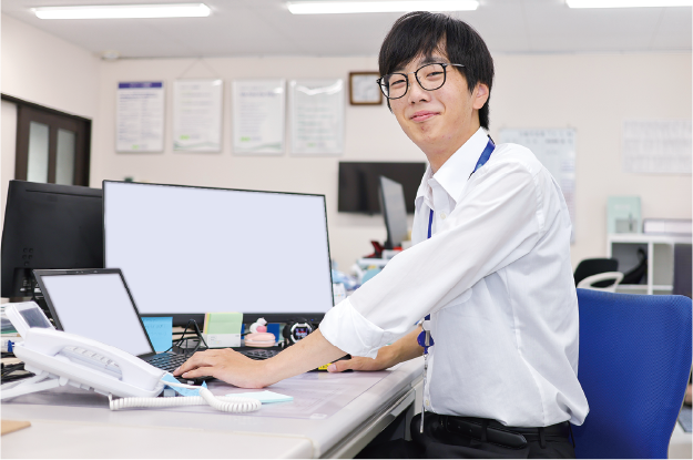 高校時代の先輩が社長と知り合いだったことから創業と同時に入社し、当初は将来的に父が経営するボーリング工事の会社で働く予定だったため、長く勤めることを想像していませんでした。しかし、芯を持って仕事に取り組み、親身になって話を聞いてくれる副社長という尊敬できる上司に出会えたことで、今も当社で仕事を続け、人としても成長することができています。さらに社内では最先端機械を導入し、経験年数が浅い若手でも機械操作が可能になり、省力化・省人化を推進している点も当社の魅力です。