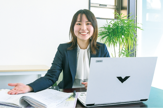 当社は県内唯一の(株)日立製作所および日立グループ企業の特約店として、空調や電気、産業機械などお客さまのニーズに応じてあらゆる製品・設備をご提案。設計、施工、アフターメンテナンスまで一貫して手がけることで、一般家庭から特殊設備が必要な事業所まで幅広く快適な空間を提供しています。私は採用業務を担当し、会社説明会や就職フェア、学校訪問などで学生と直接話をしたり、会社説明のための資料作成をしています。日々の来客対応や電話応対でお客さまと接する機会も多いです。