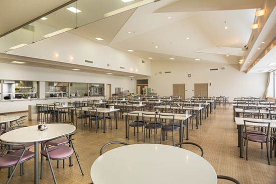 食堂業者の昼食提供あり、喫茶室あり、休憩室あり