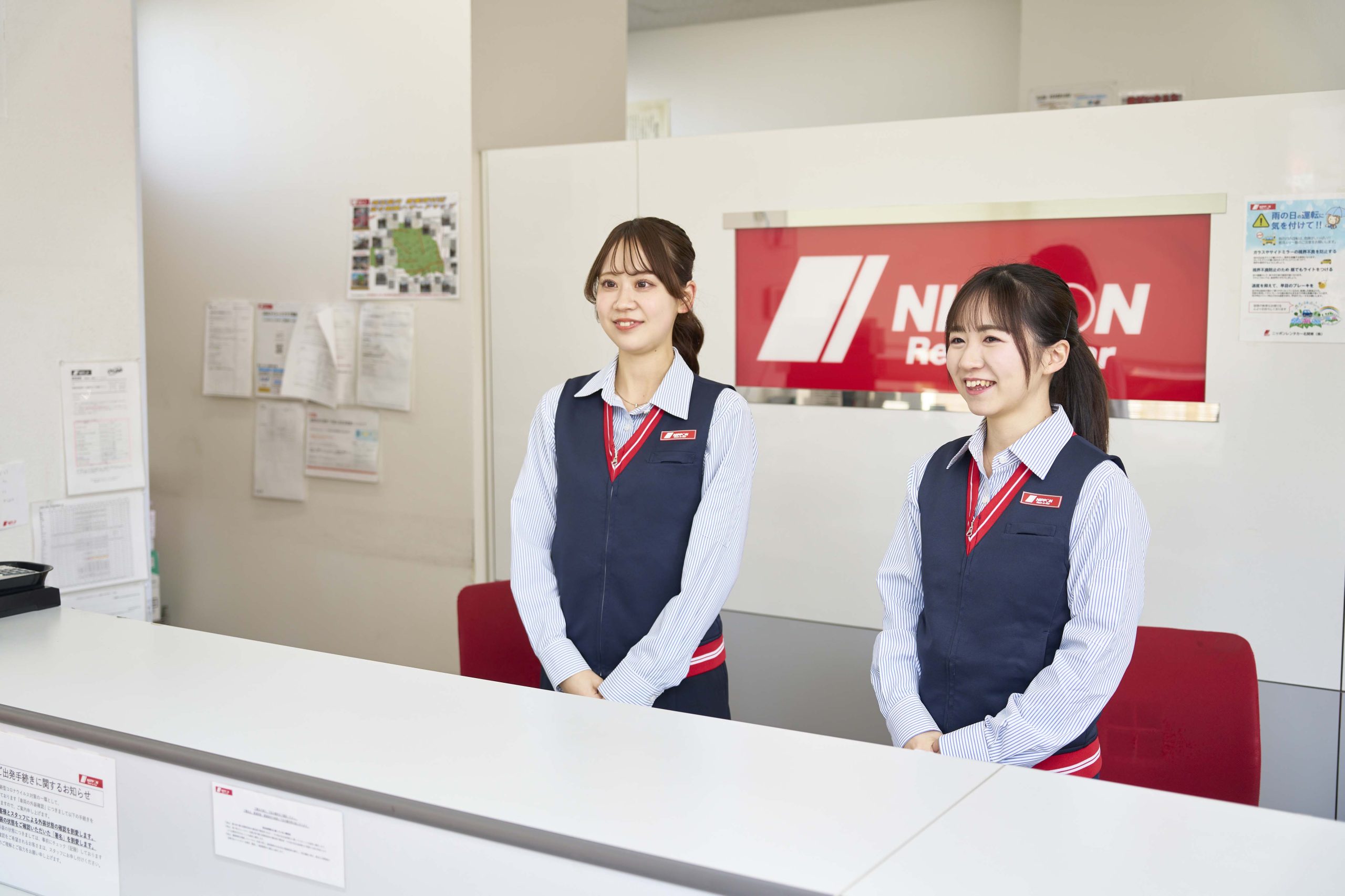 お客さまからの予約受付(電話・WEB・対面)、出発・帰着手続き、予約車両の手配などを行います。要望に応じた車種を提案するため、営業所間での在庫確認などもお任せします。お客さまに安全に出発していただくため、事故防止のためのご案内(車間距離、右左折時の巻き込み注意など)、トラブル時の連絡先、保険に関する重要事項も分かりやすく&手早く説明。ほかにもカーナビの使い方の説明や、道路への誘導なども重要な役割です。帰着時にはガソリン補充の有無を確認し、それに応じた料金精算、車両の損傷有無、車内にお客さまの忘れ物がないかなどを確認します。