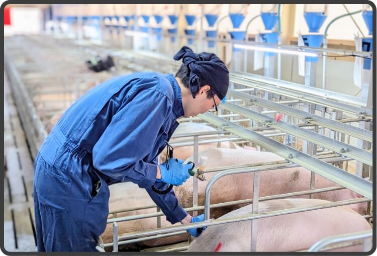 出産をサポートし、生まれた子豚のケア(ワクチンや簡単な処置など)を行います。